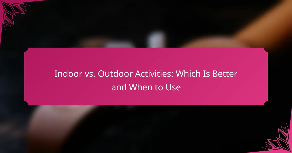 Choosing between indoor and outdoor activities often depends on the weather, space, and safety considerations. Indoor activities offer a controlled environment for family bonding and creativity, while outdoor activities promote physical health and connection with nature. Understanding when to utilize each type can enhance family time and cater to everyone’s interests and needs.