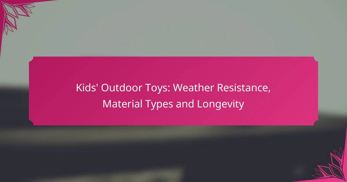 When selecting outdoor toys for kids, it’s essential to consider their weather resistance and material types to ensure safety and durability. Toys made from plastic, metal, and treated wood each offer distinct advantages, impacting their longevity and maintenance needs. By choosing the right materials, parents can enhance the lifespan of these toys, allowing for countless hours of outdoor fun.